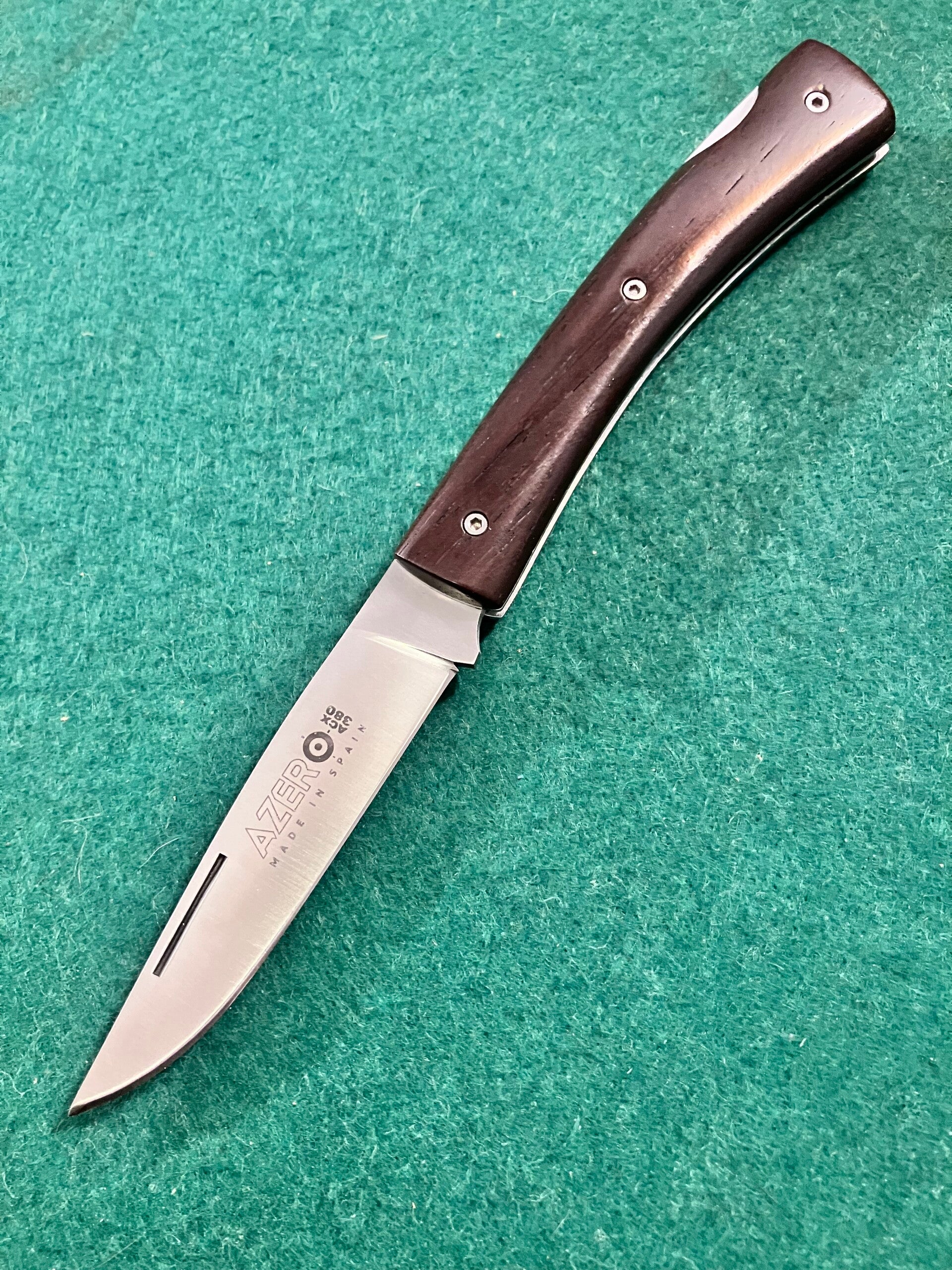 Azero lockback in desert ironwood. Blade length approx 83mm.