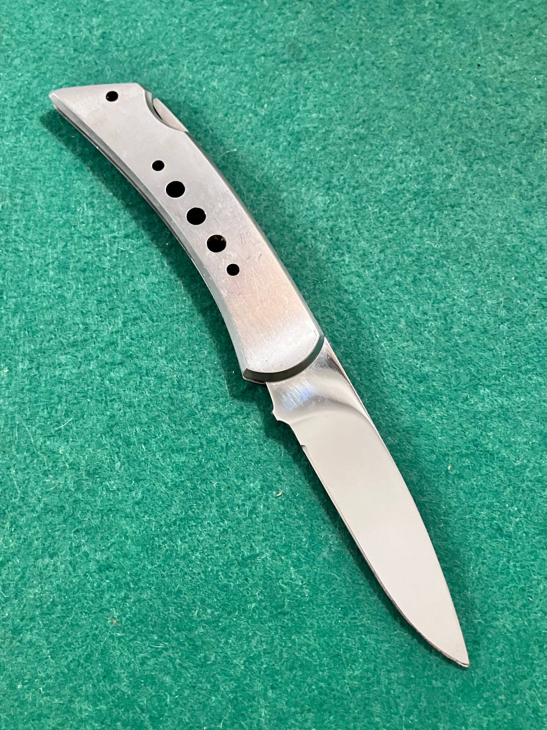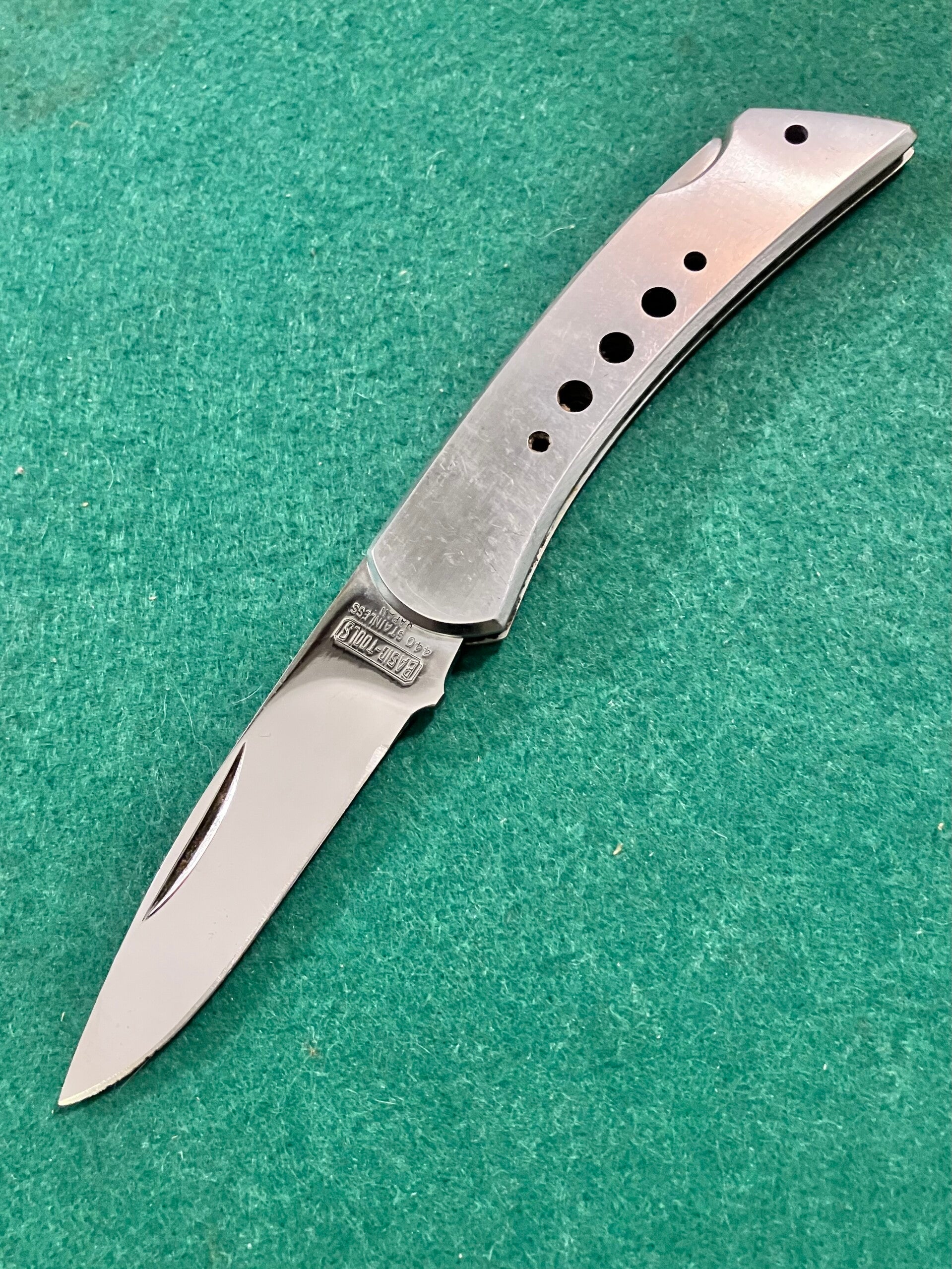Sturdy all stainless lock knife by Basic-Tools Japan. Appears to have had very little use. Blade length approx 84mm. PHOTO ID REQUIRED BEFORE POSTING