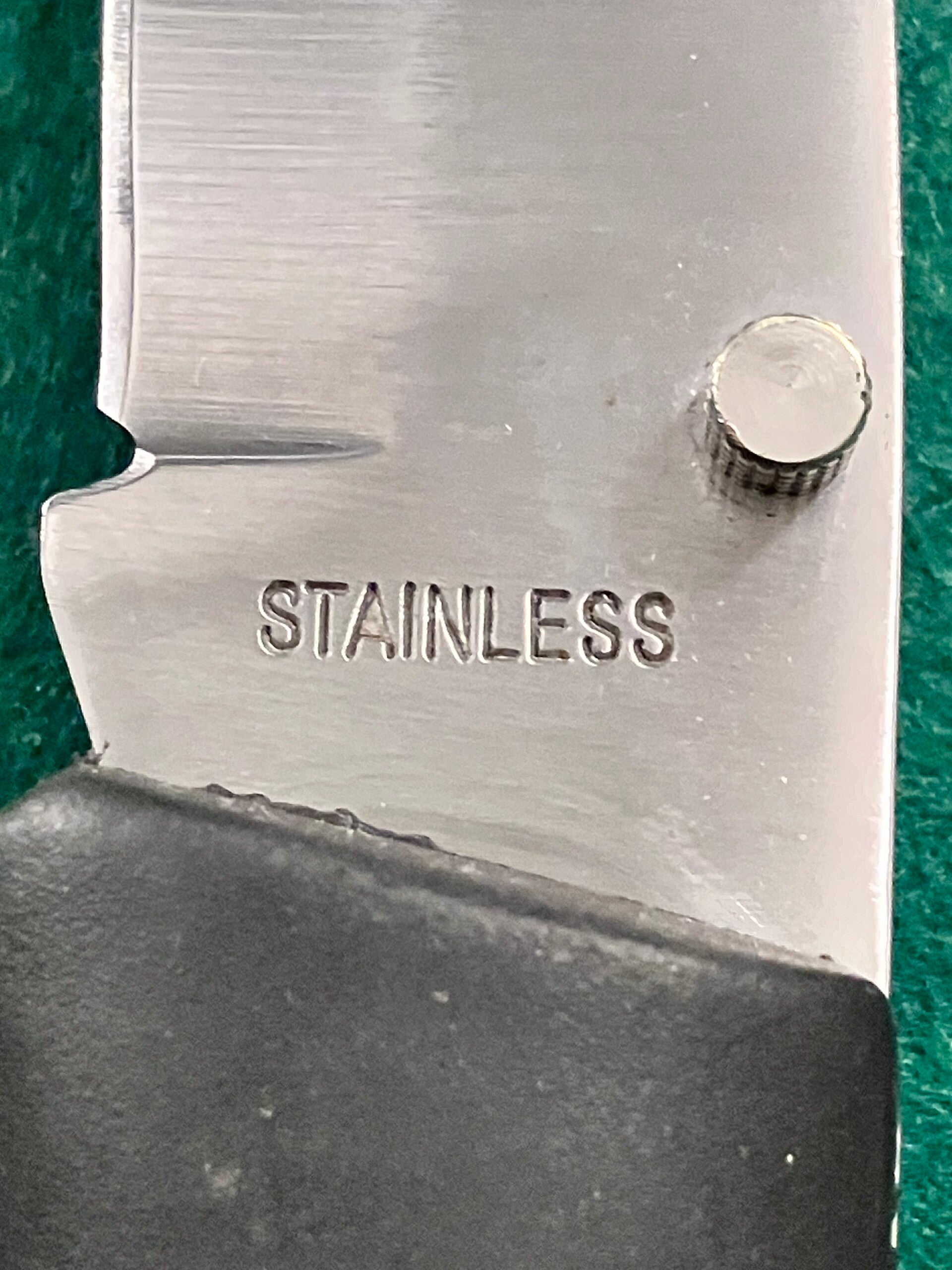 No makers mark/country of origin but presumably Chinese. Simple lock knife with rubber coated handle. Lock up seems good and firm, will make a good working knife. Blade length approx 85mm. PHOTO ID REQUIRED BEFORE POSTING