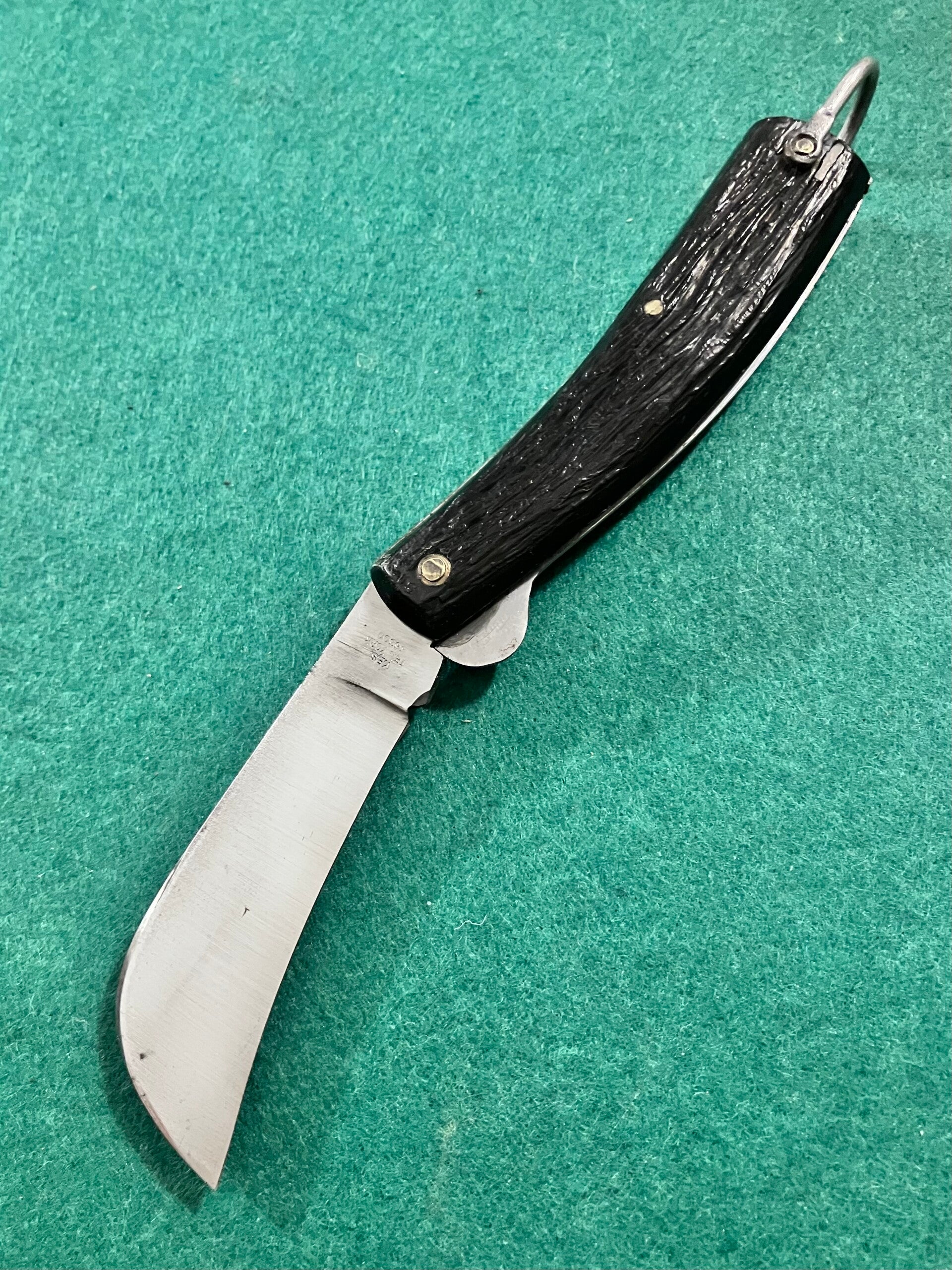 Locking plumbers knife with synthetic scales. Looks to have had little if any use.