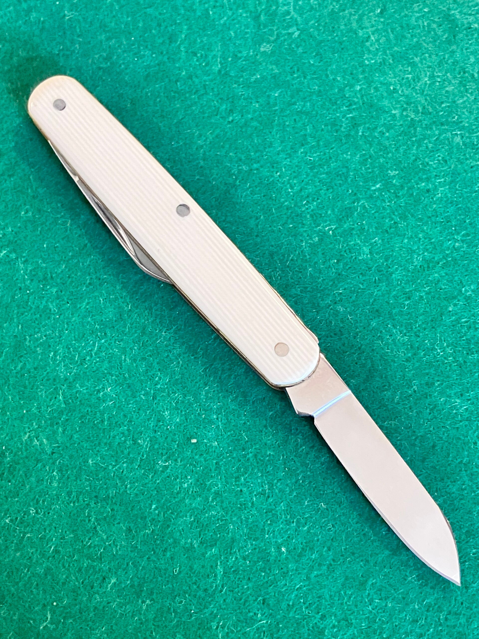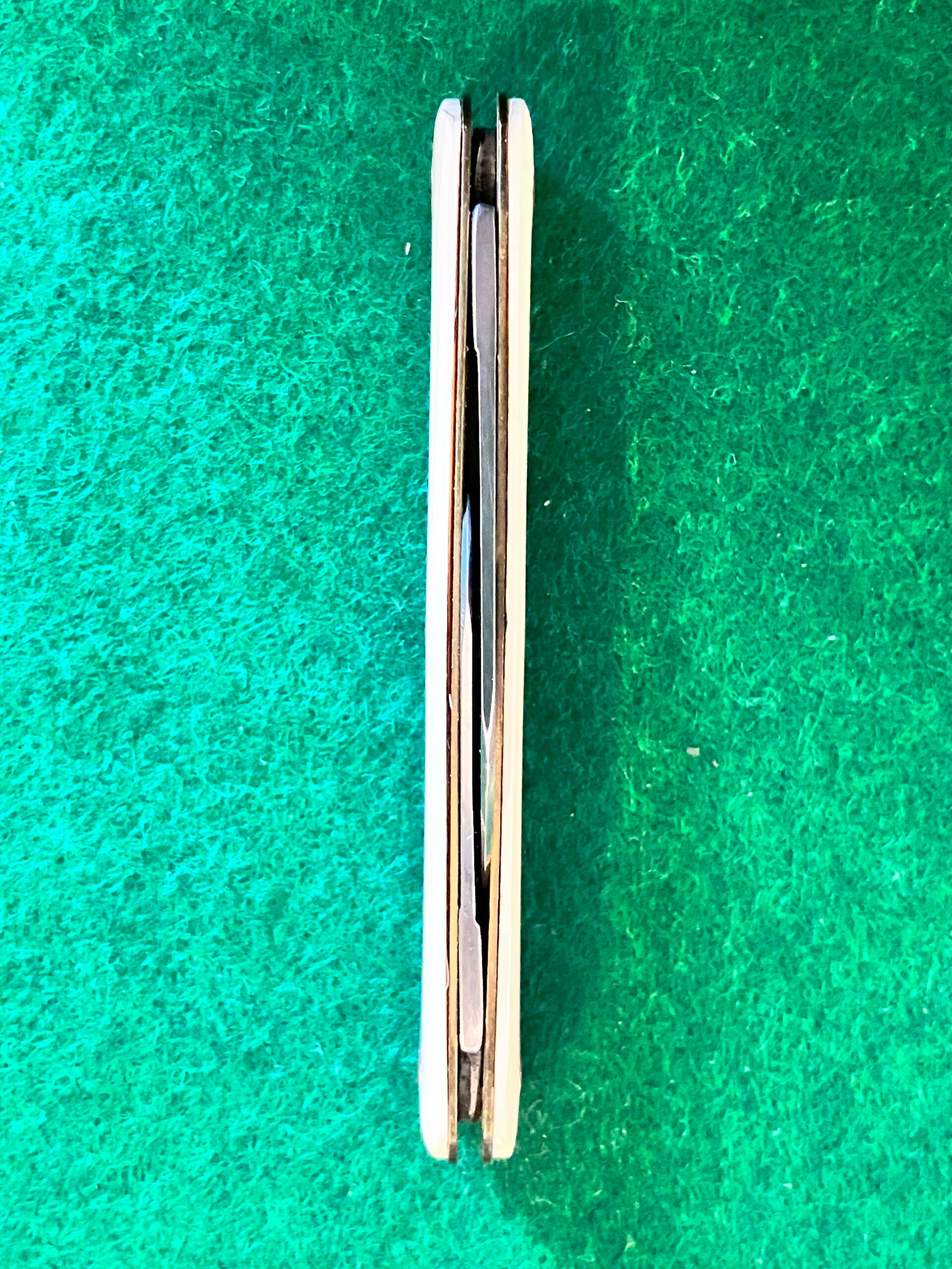 Circa 1990's, early 2000's Sheffield made penknife with stainless blades in as new condition. Spring back is stamped to look like filework. Main blade length approx 45mm. PHOTO ID REQUIRED BEFORE POSTING