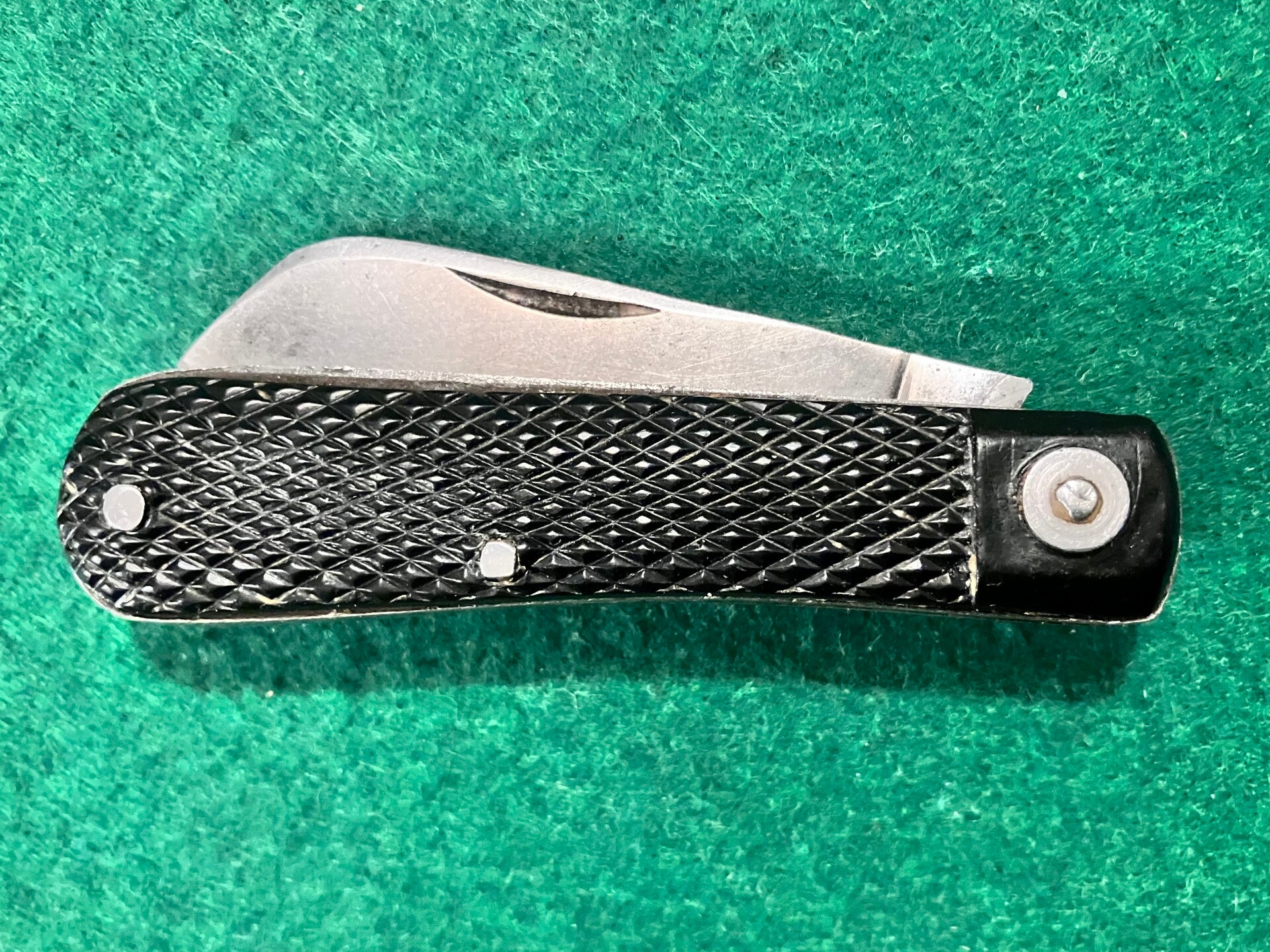 40's/50's vintage sheepsfoot knife with bex scales. No markings, almost certainly Sheffield made. Excellent snap & no play. Blade length approx 67mm. PHOTO ID REQUIRED BEFORE POSTING
