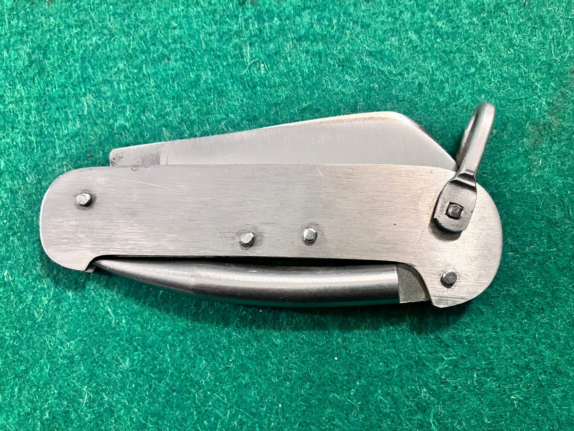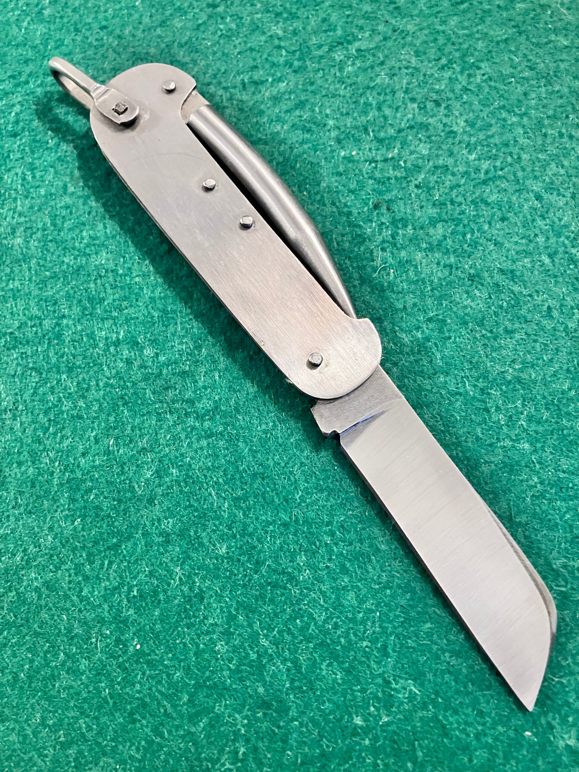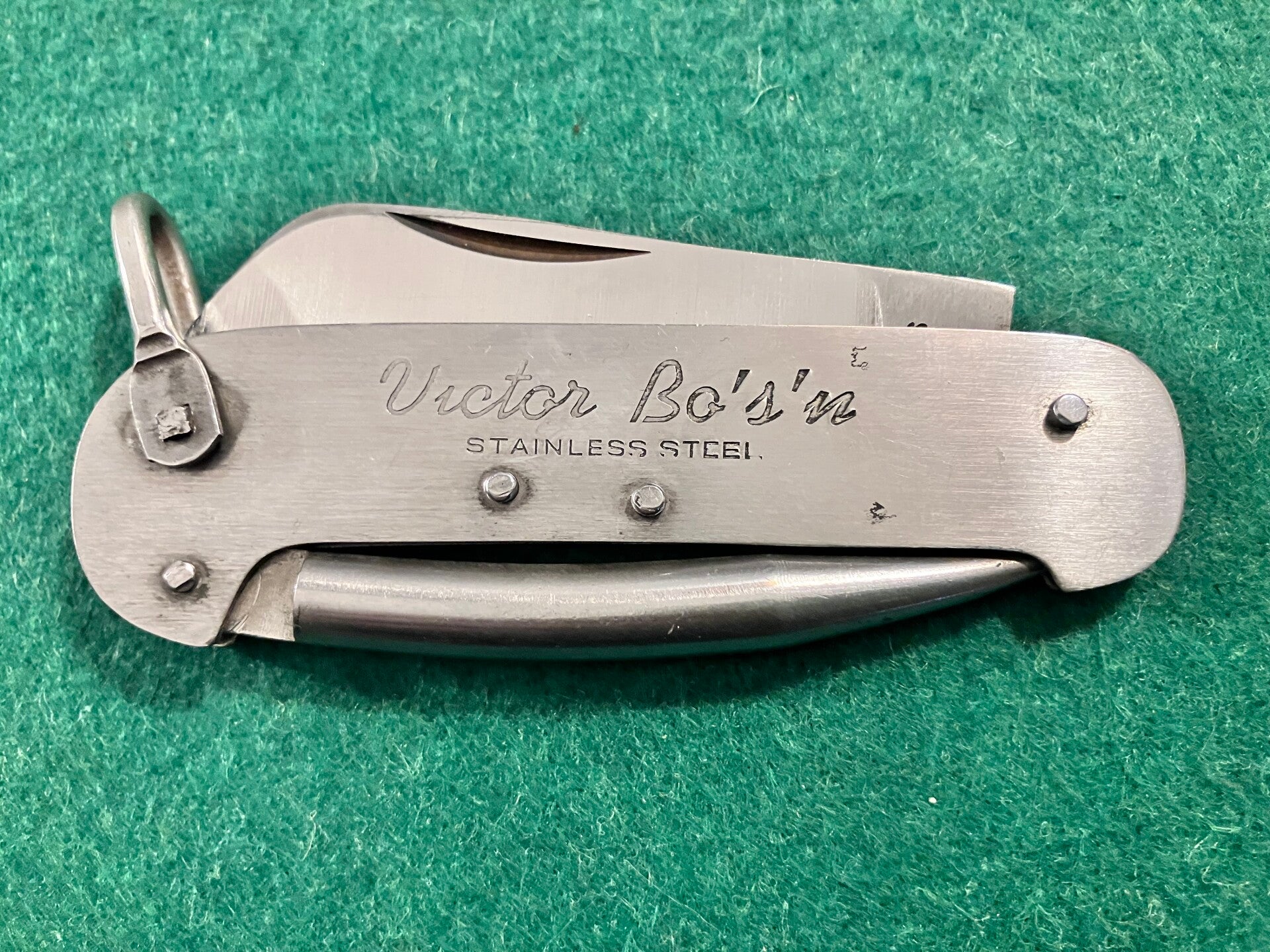 Japanese made all stainless nautical knife. Looks to have had little if any use. Good snap & no play. Marline spike locks open and closed by use of the shackle. Blade length approx 68mm. PHOTO ID REQUIRED BEFORE POSTING