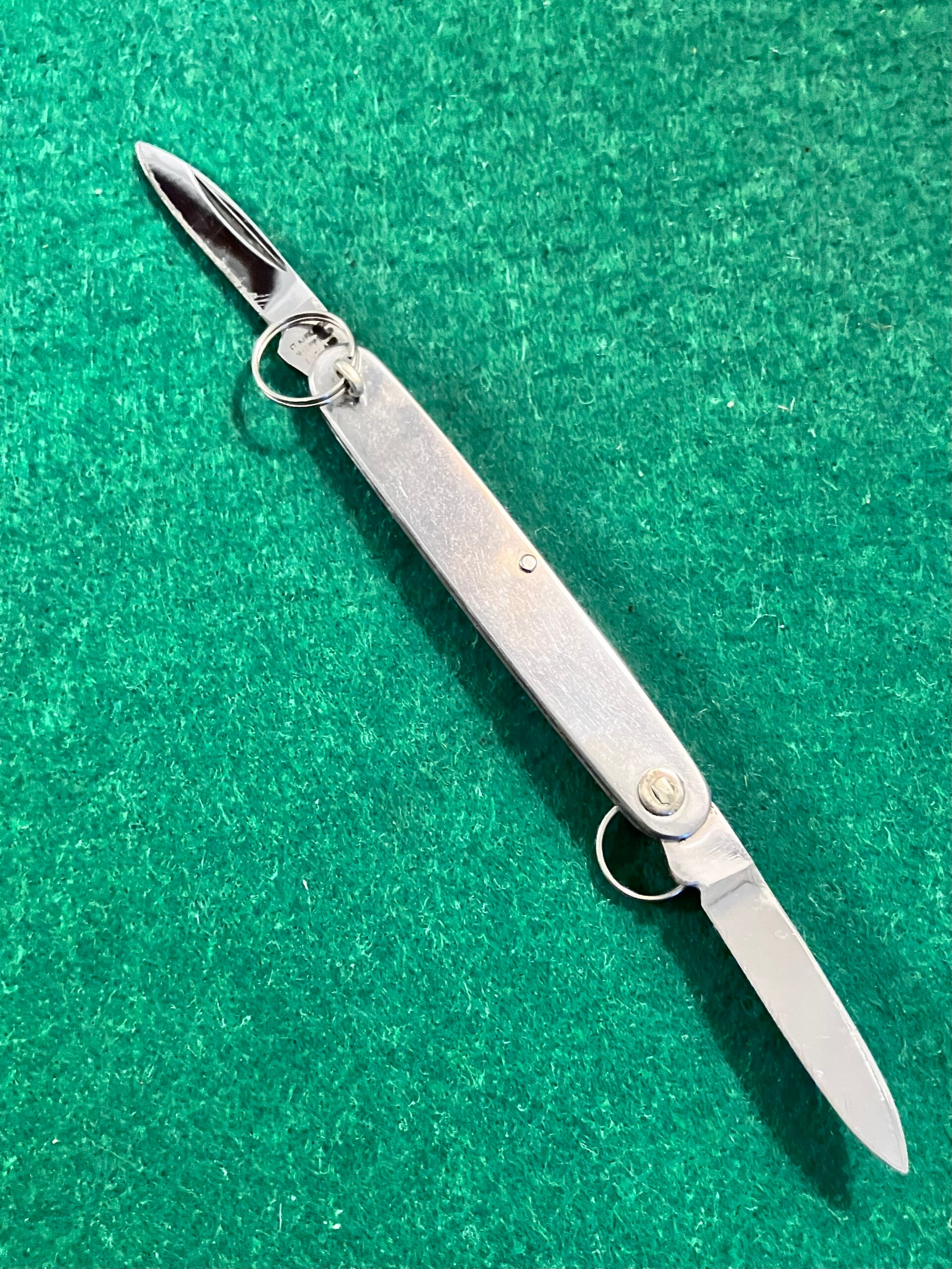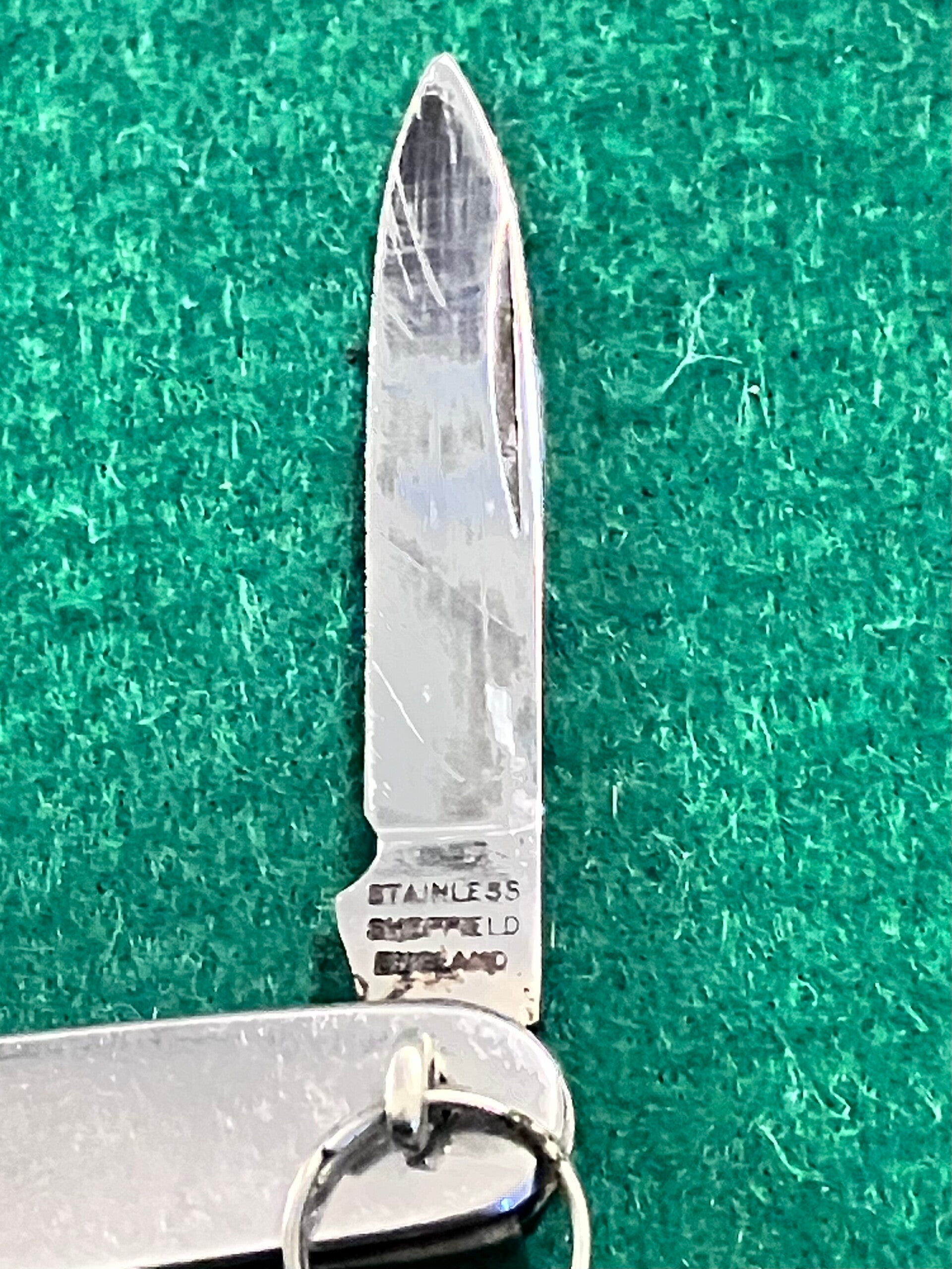 I think this is 1980's vintage. All stainless construction, both blades show signs of sharpening. No makers mark. Good snap & no play. Main blade length approx 46mm. PHOTO ID REQUIRED BEFORE POSTING