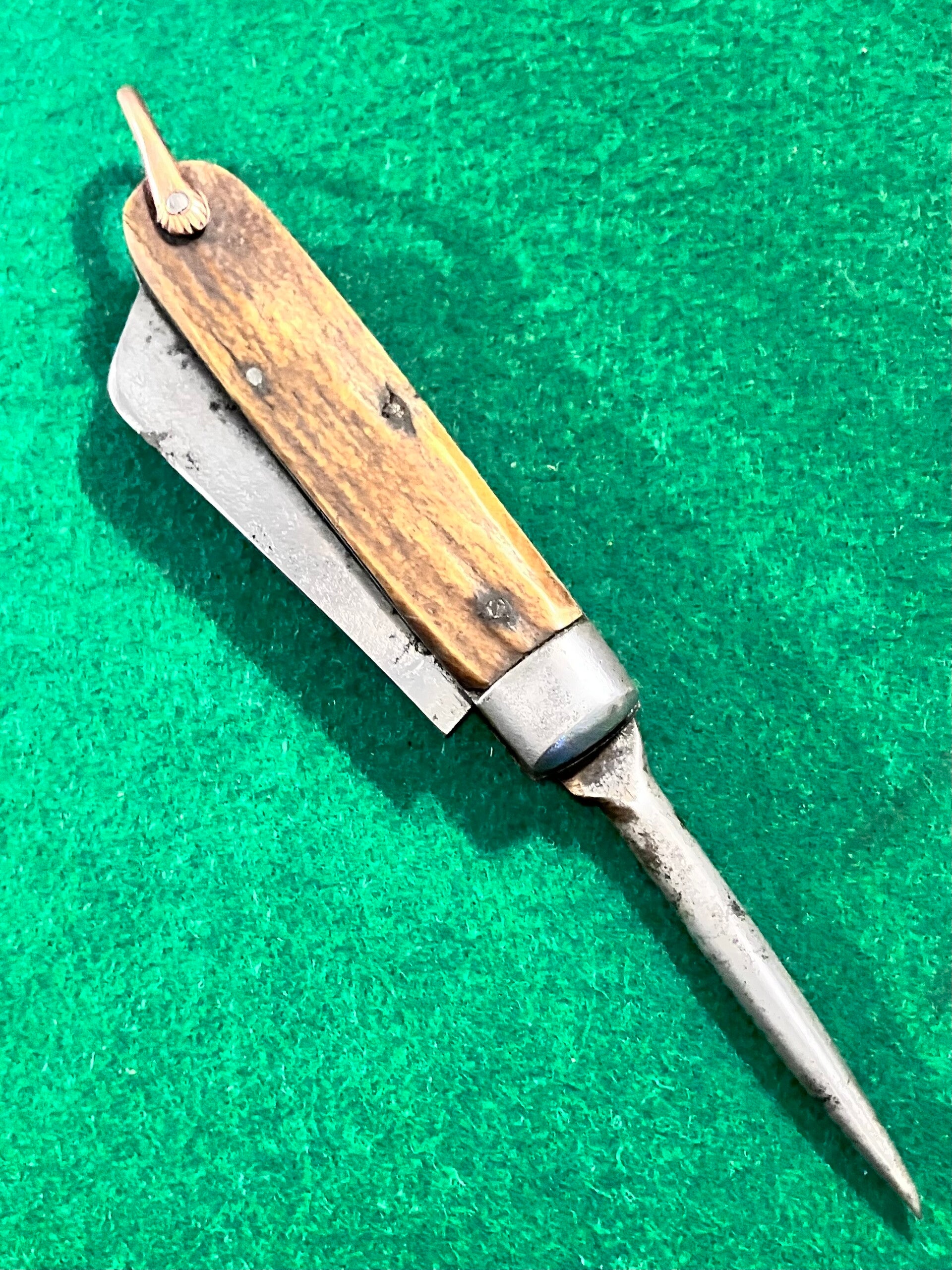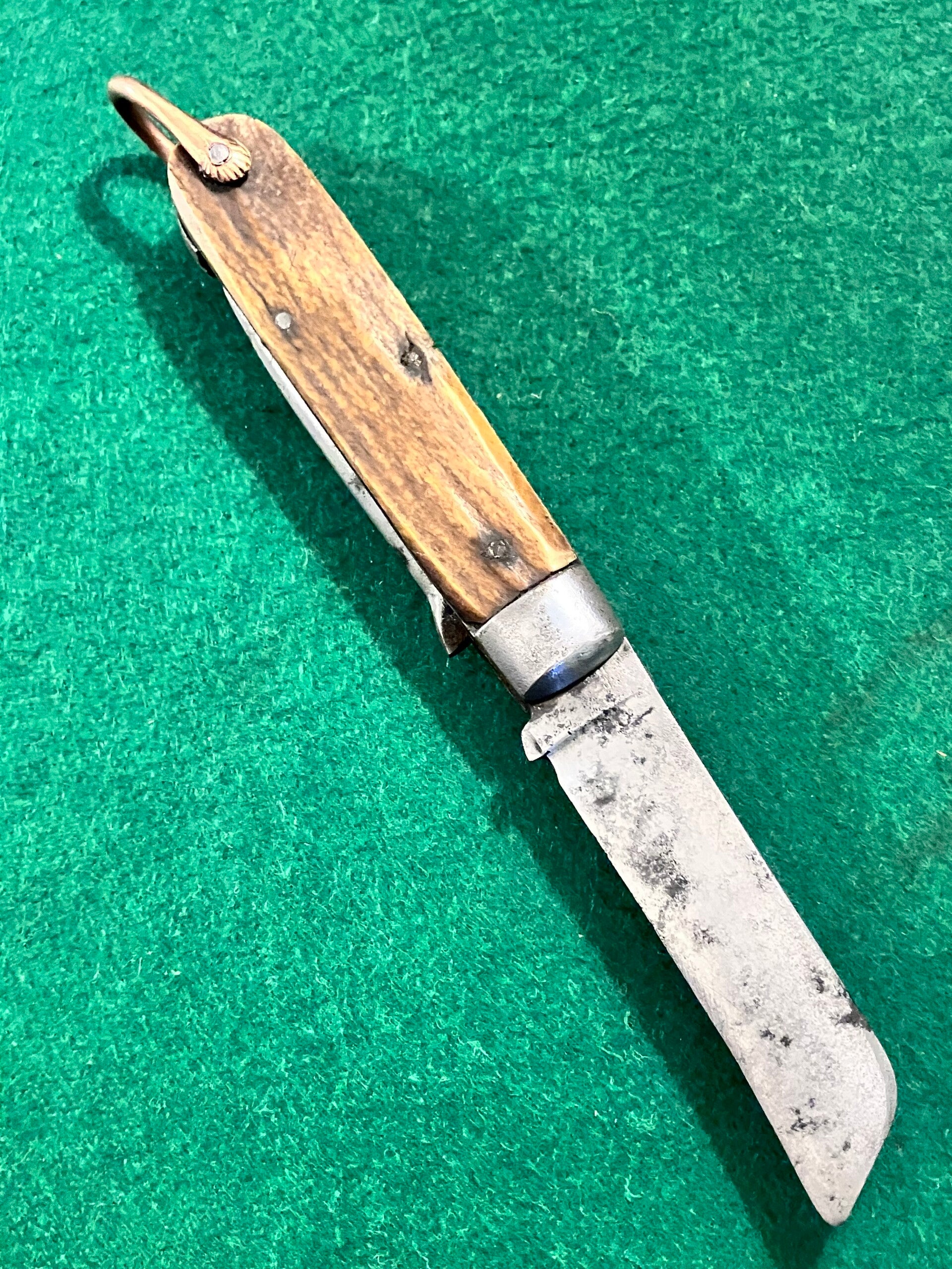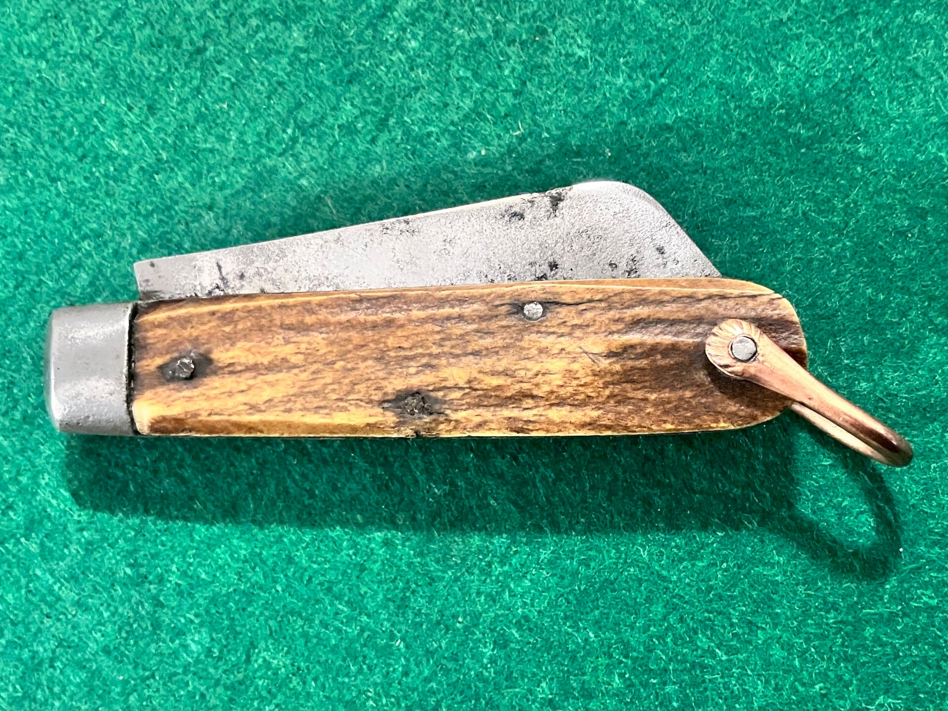 Pitting to various areas as shown but all there with the usual strong snap. Tang stamp is worn but can just make out 'Allen & son, Sheffield' No play. Lovely patination to the stag scales. Blade length approx 92mm. PHOTO ID REQUIRED BEFORE POSTING