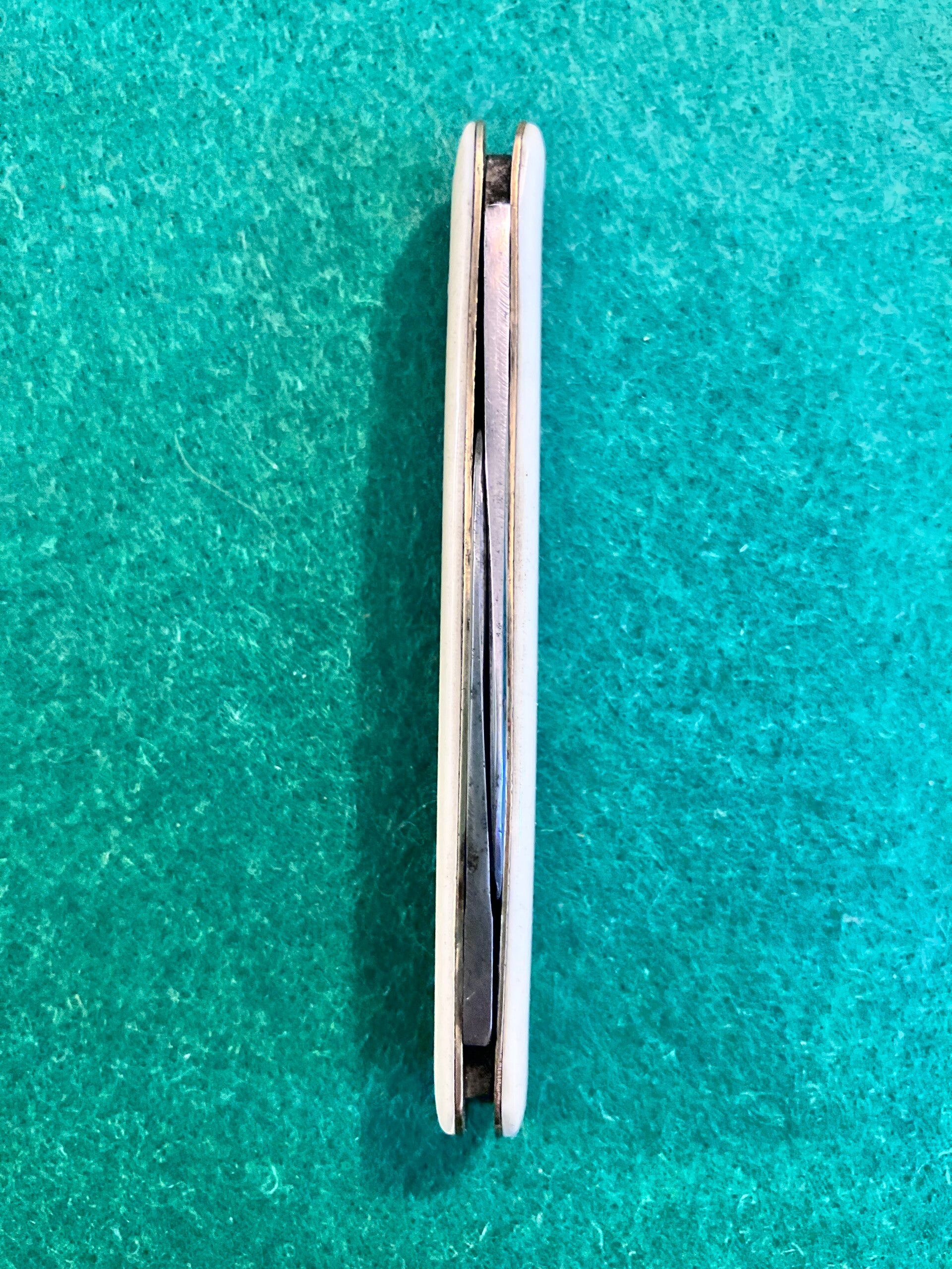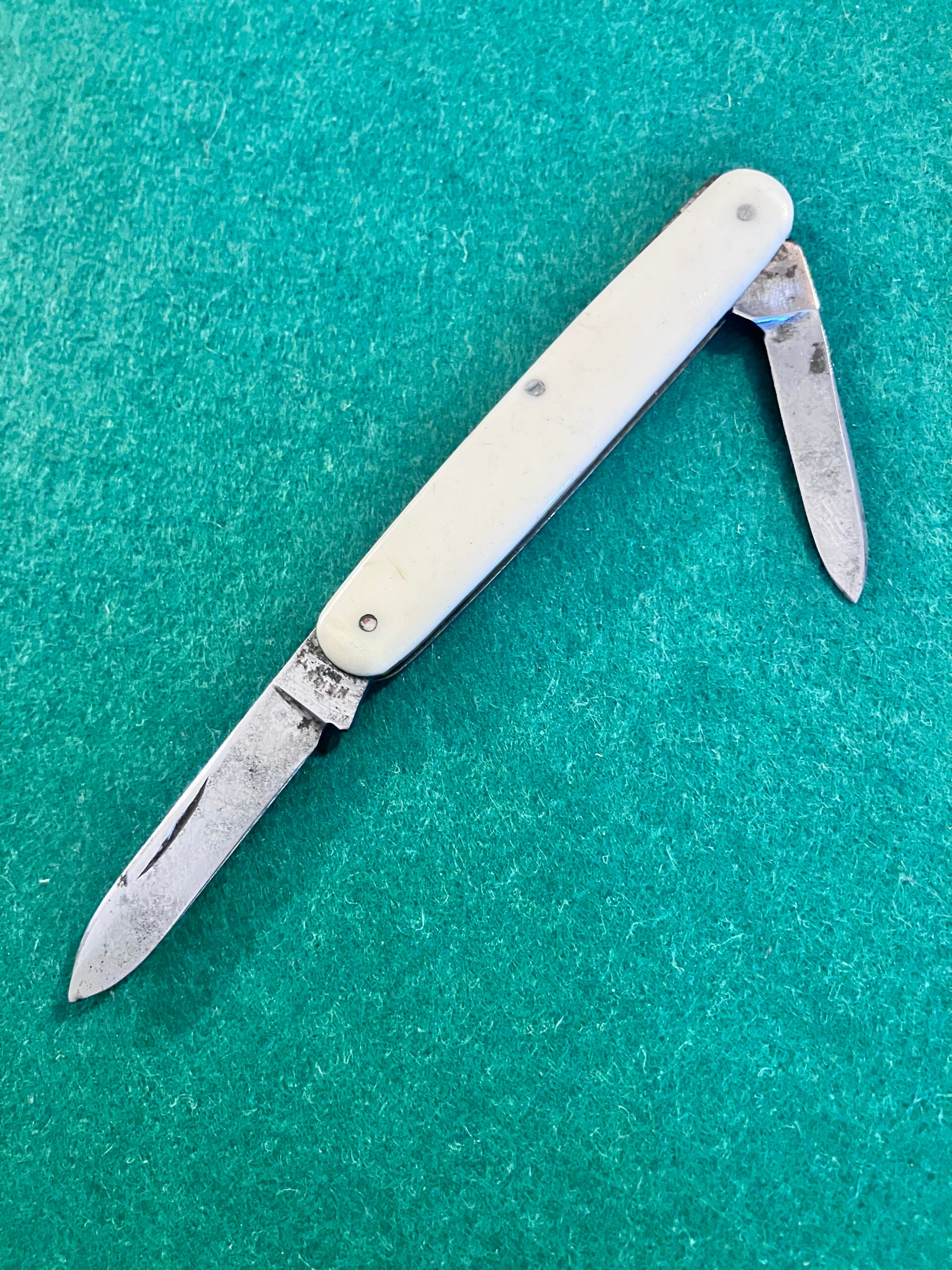 Synthetic scales, good snap but some sideways play in main blade. Fair condition for its age. Main blade length approx 50mm. PHOTO ID REQUIRED BEFORE POSTING
