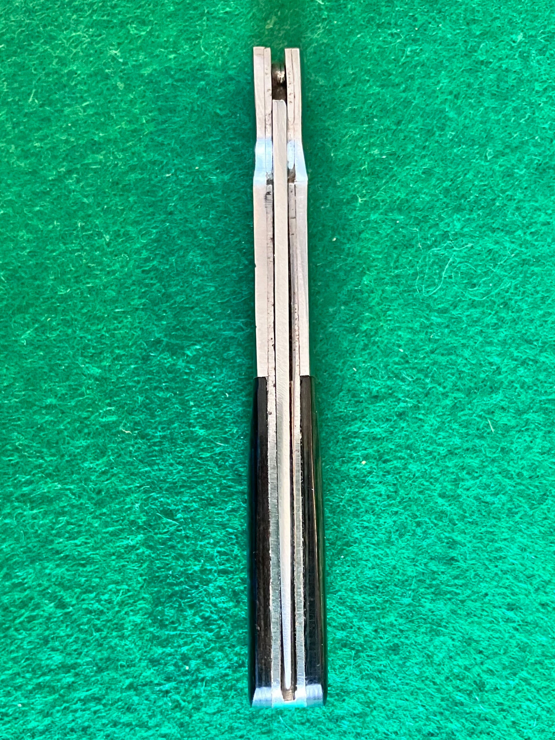 Good used condition Vendetta style knife. Good snap & no play. Blade length approx 76mm. PHOTO ID REQUIRED BEFORE POSTING
