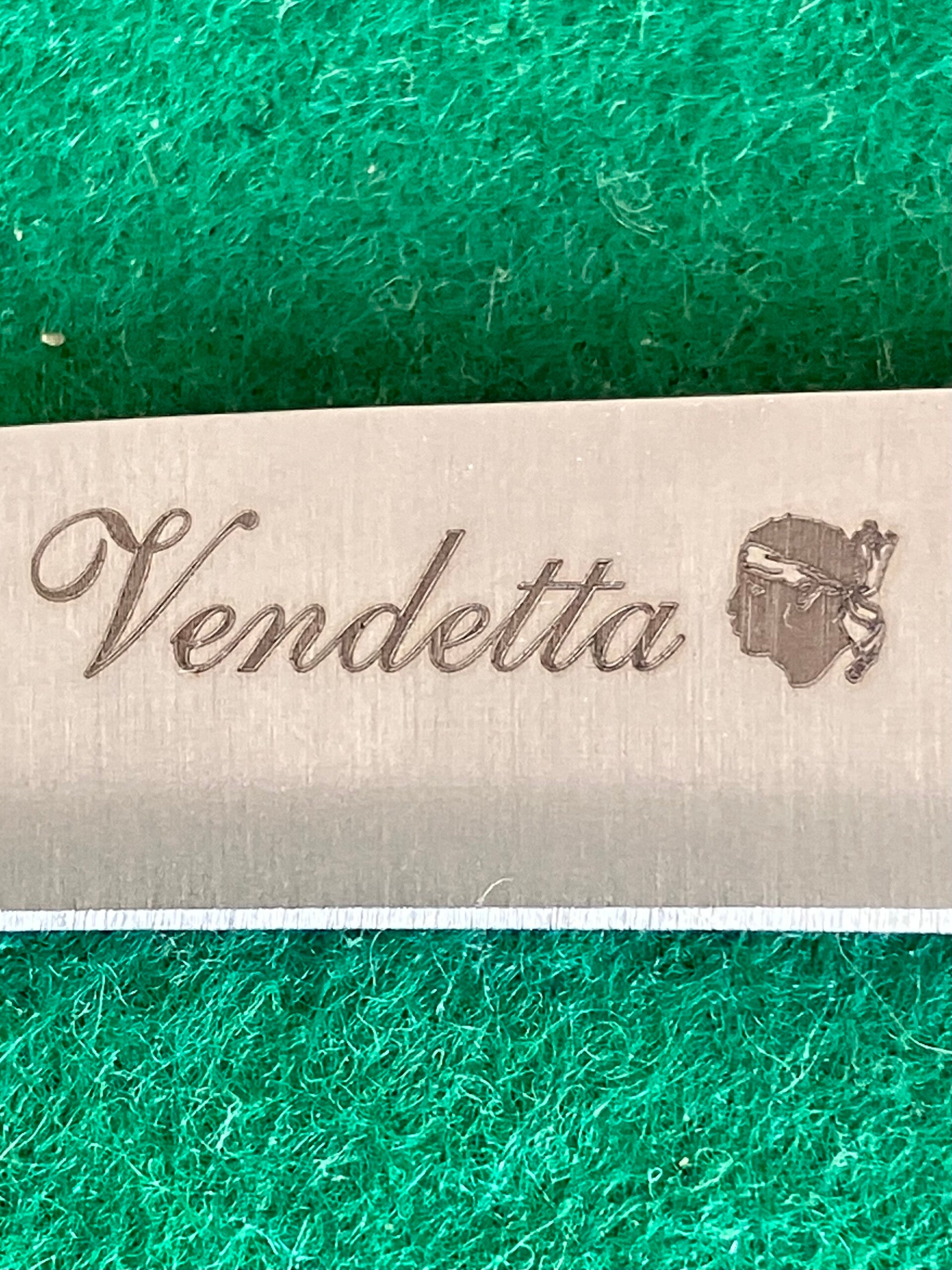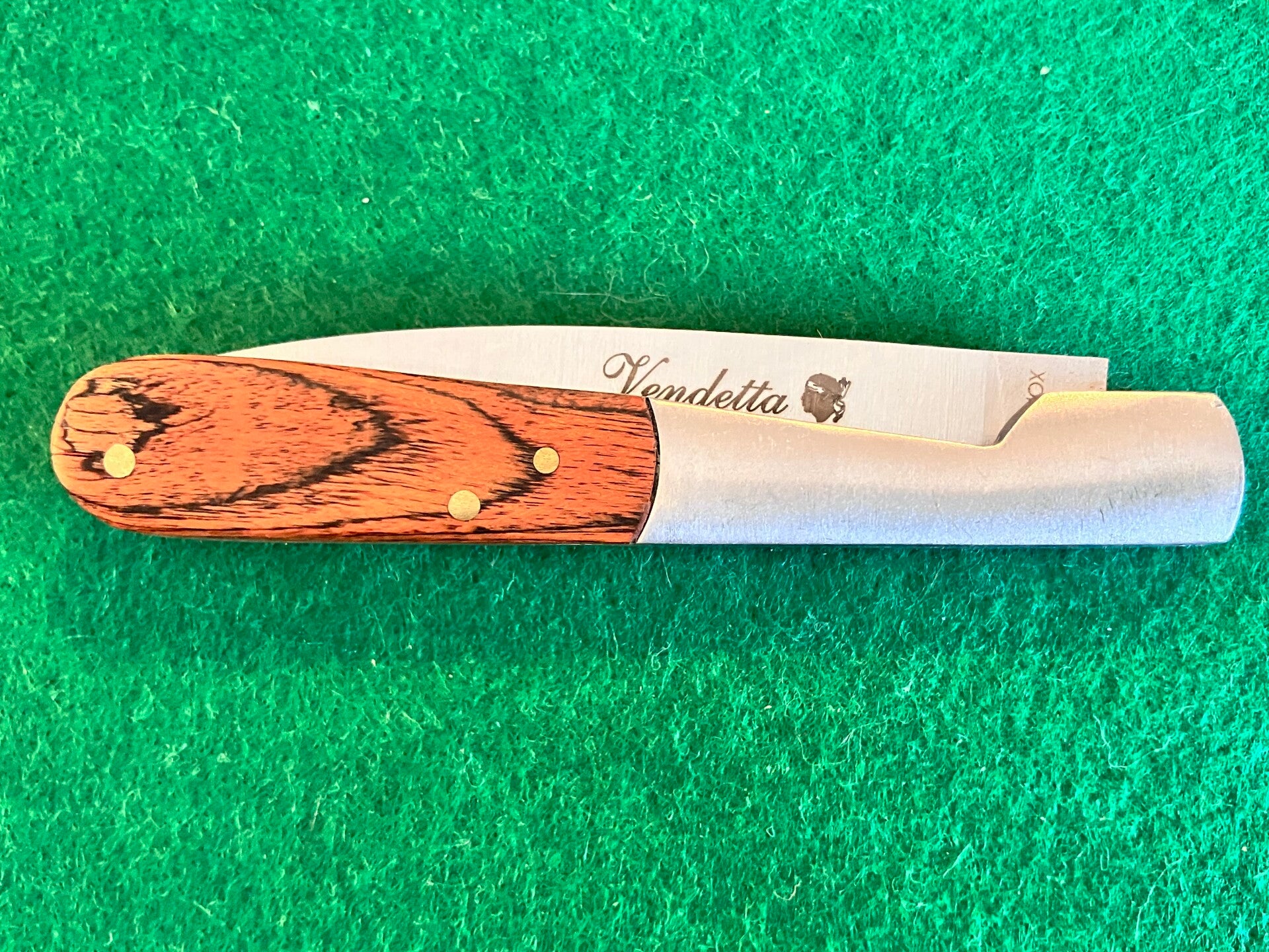 Lightly used Vendetta style knife made in Spain. Good snap & no play. Blade length approx 82mm. PHOTO ID REQUIRED BEFORE LISTING