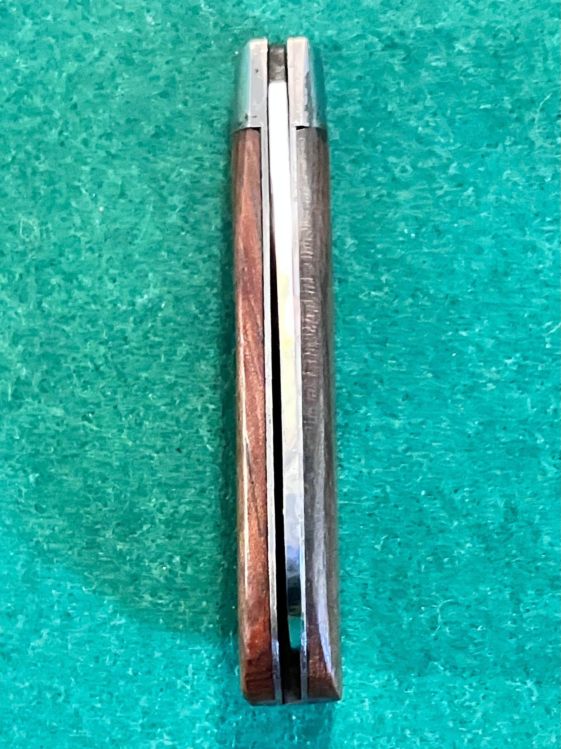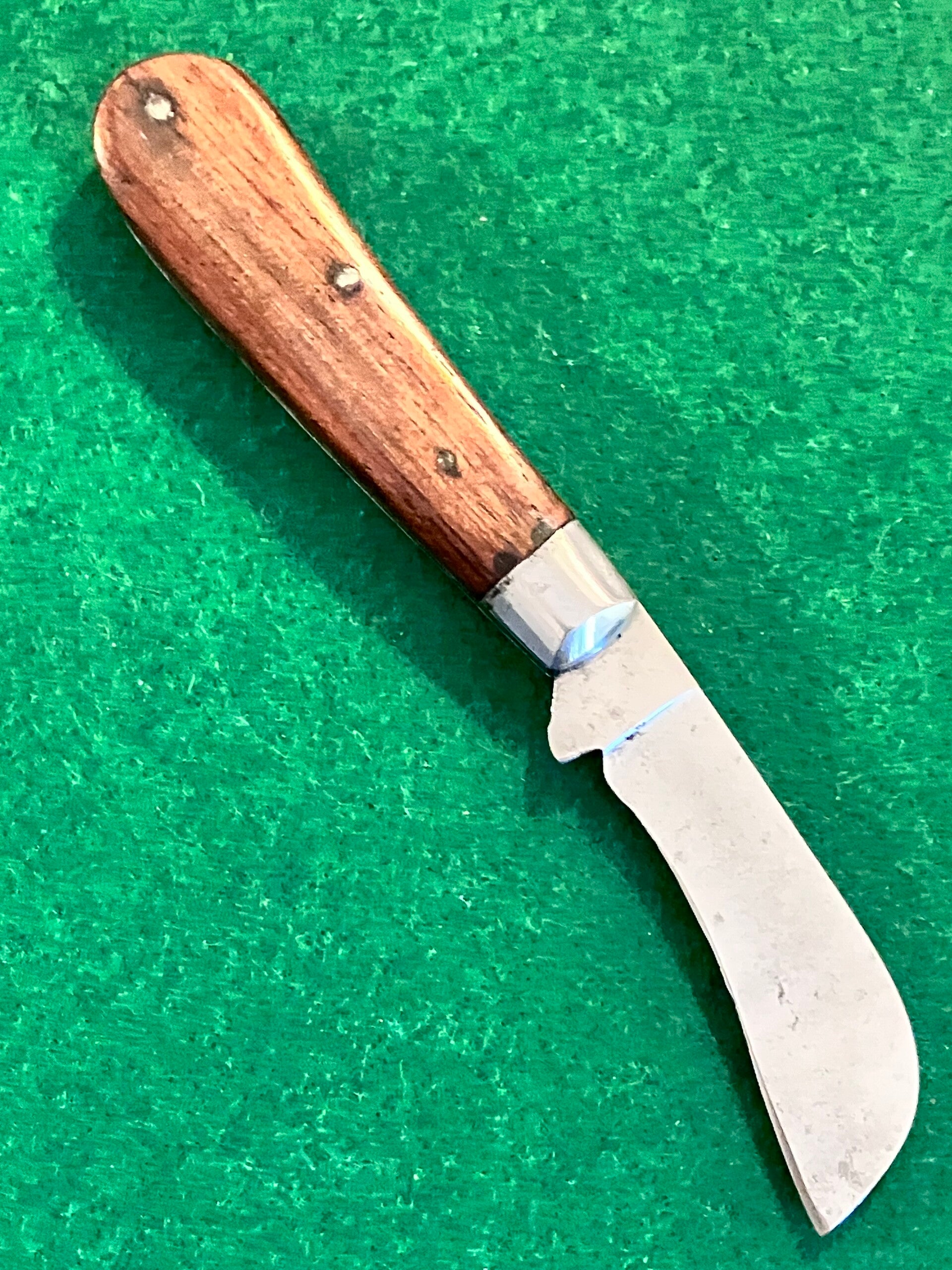 Wood scale pruner in used condition. Excellent snap and no play. No makers marks. Blade length approx 67mm. PHOTO ID REQUIRED BEFORE POSTING