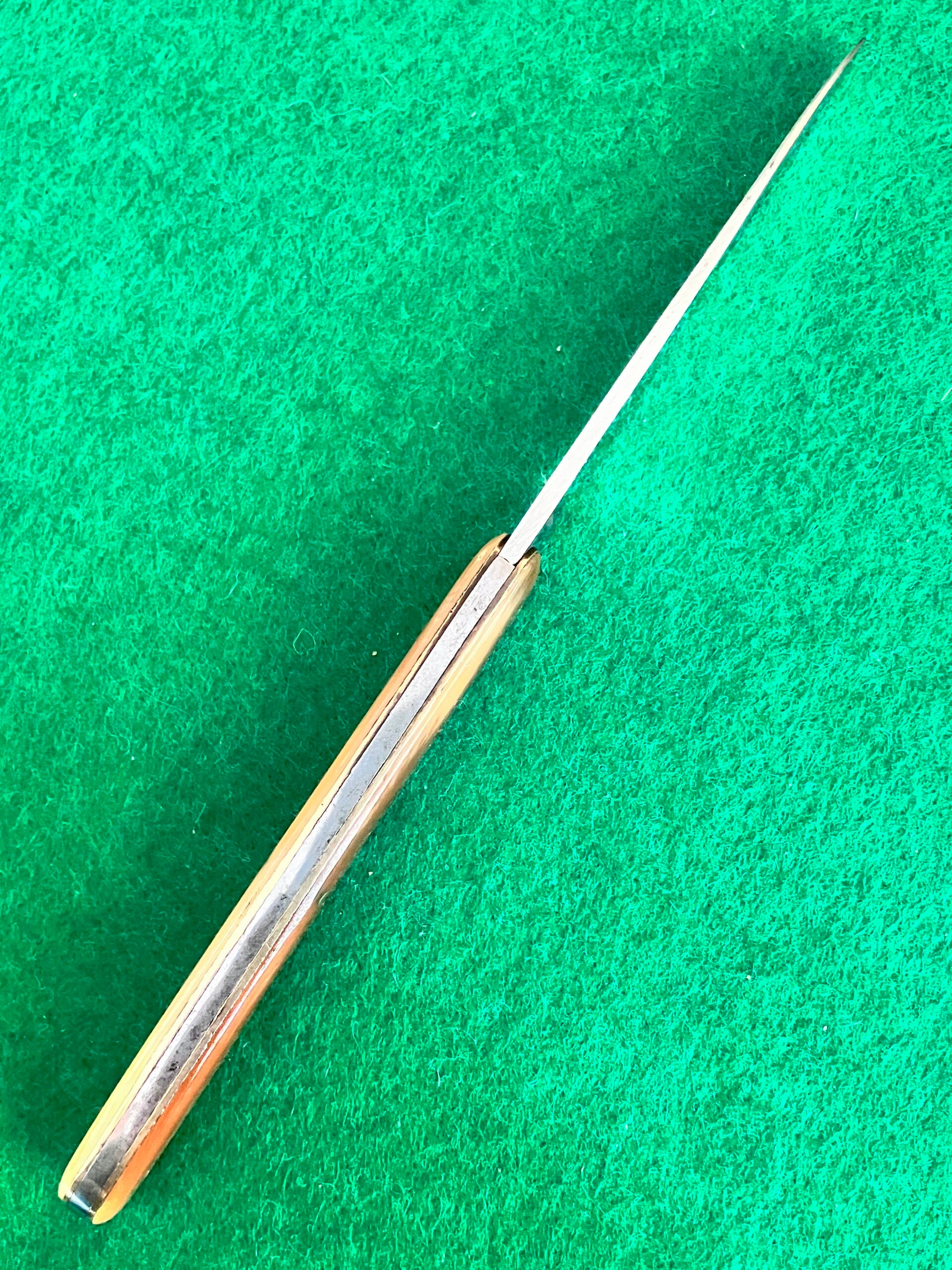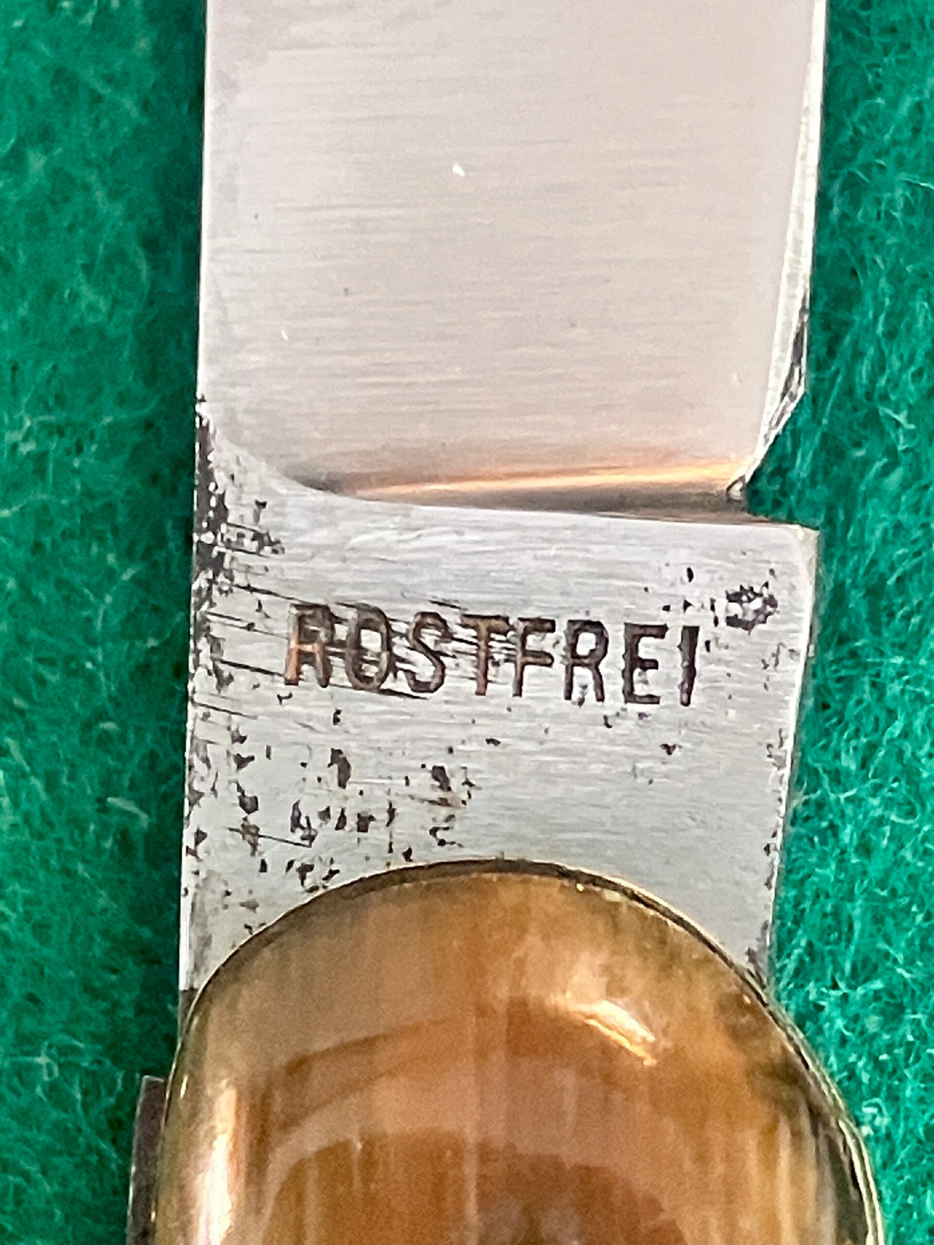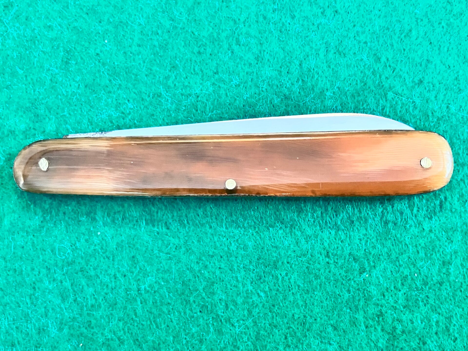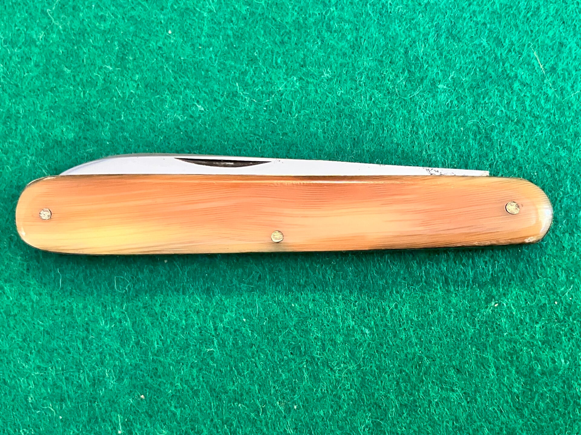 'Luna' brand Solingen knife, stainless blade with imitation horn scales. 50's-60's vintage. Very good condition, looks to have had very little, if any, use. Good snap & no play. Blade length approx 71mm. PHOTO ID REQUIRED BEFORE POSTING